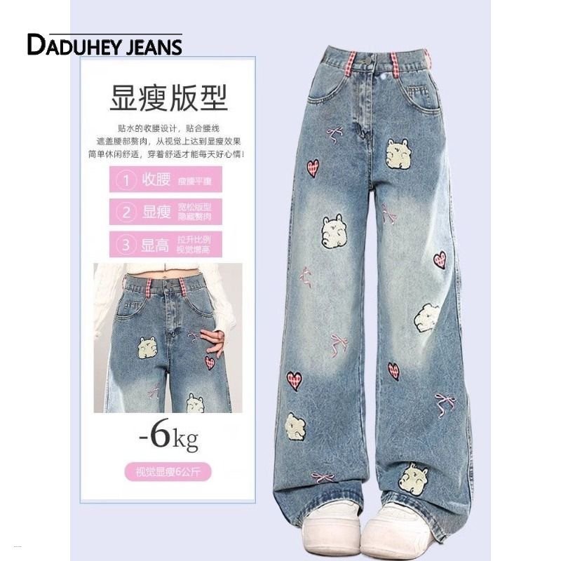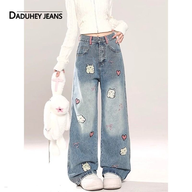 Western Cute Casual Embroidered Wide-Leg Loose Trendy Jeans Pants